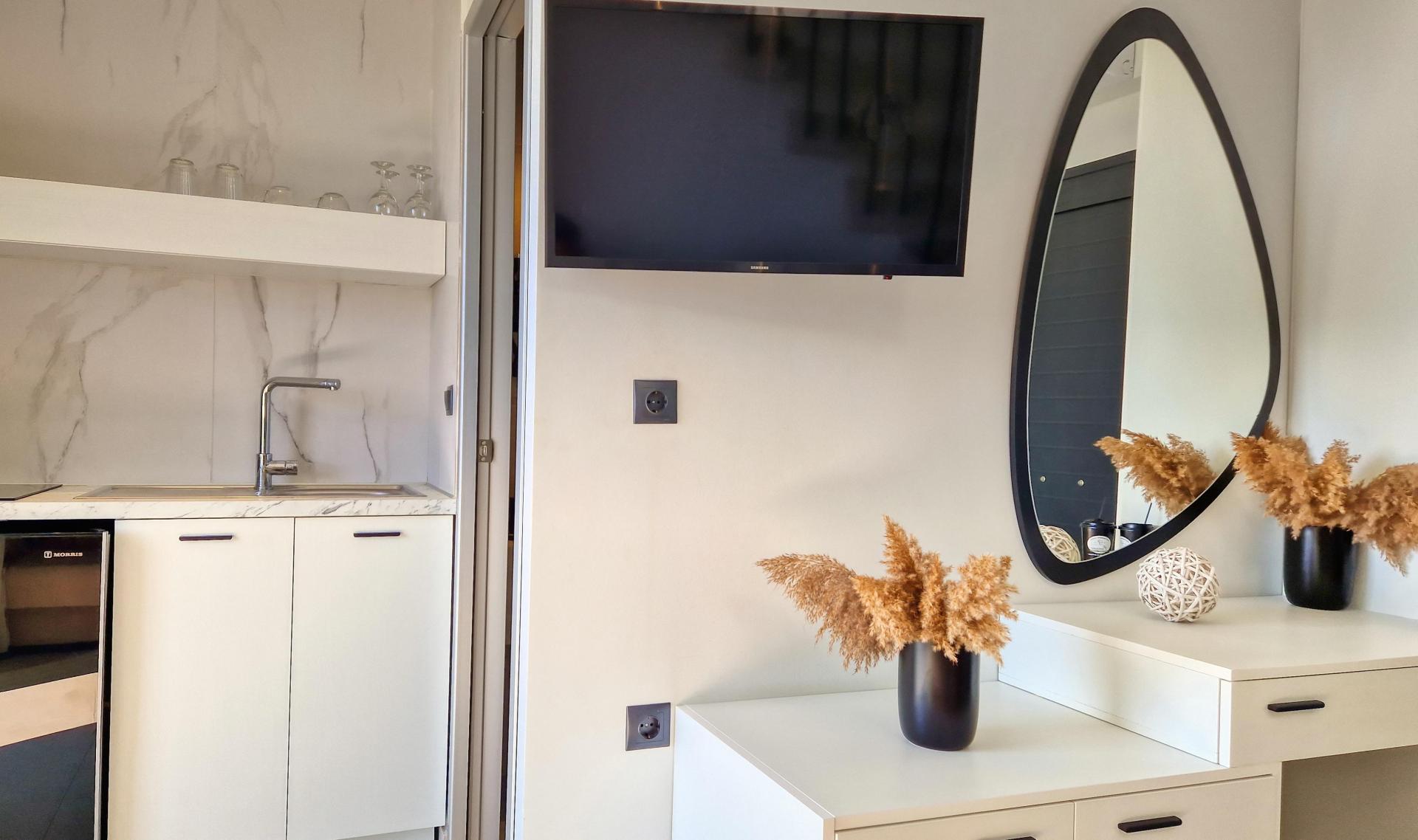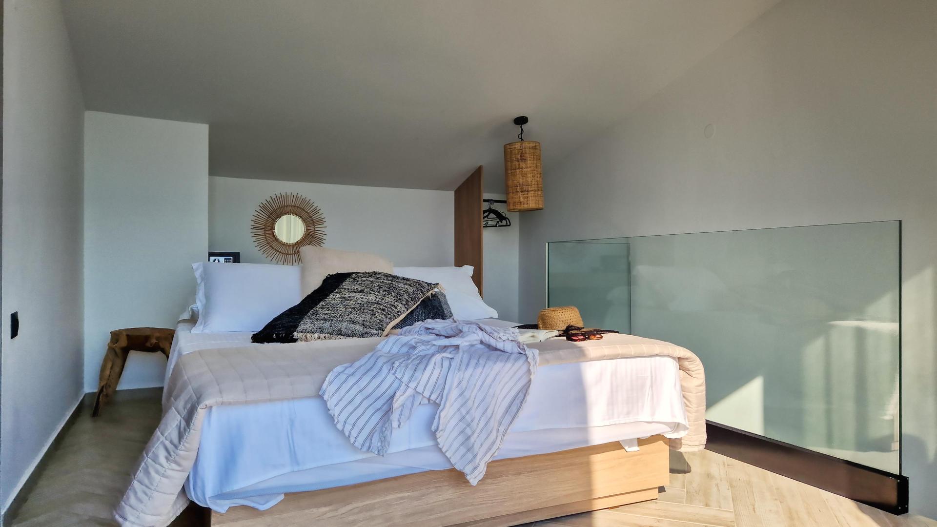 Μοντέρνο με όλες τις ανέσεις διαμέρισμα δύο ορόφων με ξεχωριστό μπάνιο σε κάθε όροφο. Στον επάνω όροφο υπάρχει ένα διπλό κρεβάτι και έχει δικό του μπάνιο, ενώ στο κάτω όροφο υπάρχει καναπές – κρεβάτι καθώς και κουζίνα και μπάνιο. Μια πολύ καλή επιλογή για οικογένεια ή και παρέα μέχρι τέσσερα άτομα.