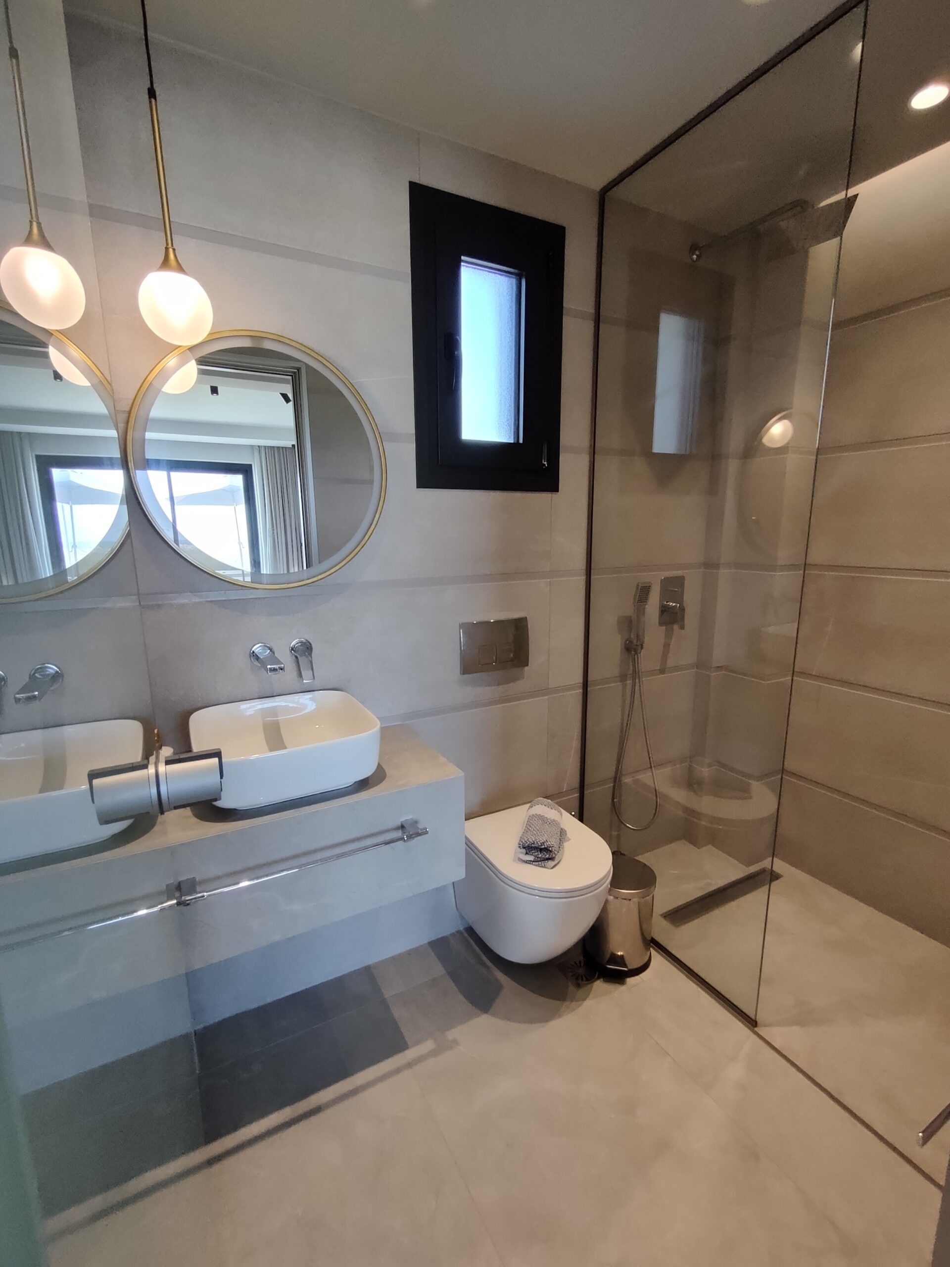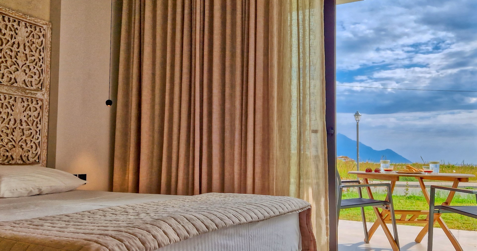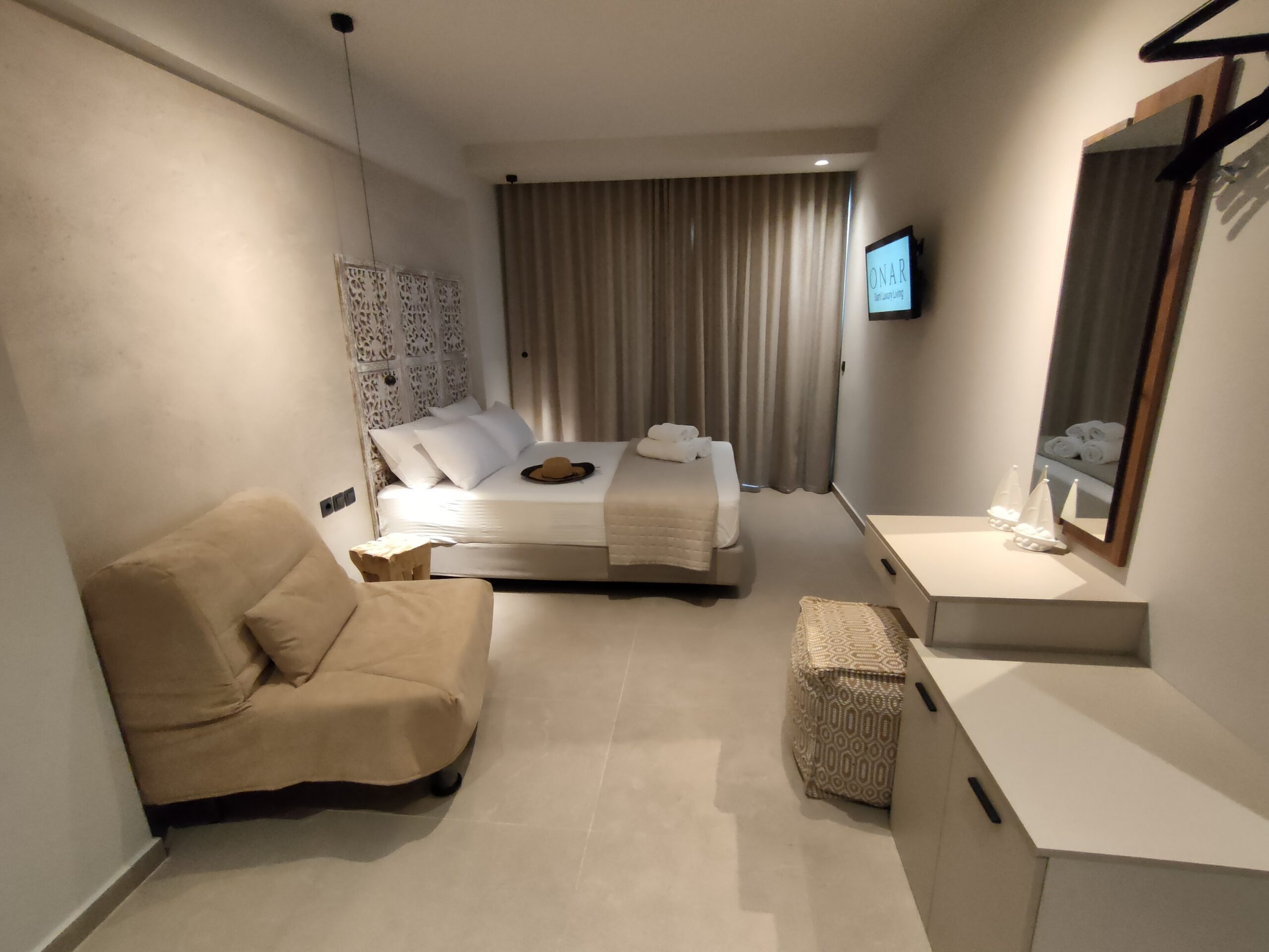 Κομψό μοντέρνο δωμάτιο ιδανικό για τρεις ενήλικες ή για οικογένεια με ένα παιδί. Προσφέρει μοναδική θέα και έχει απευθείας πρόσβαση στον κήπο